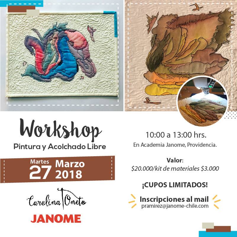 Para Mayo se viene un workshop que muchas estaban pidiendo! Acolchado libre (freemotionquilting), en este taller les enseñaré técnicas de cómo acolchar y muchos diseños que podemos hacer cuando Acolchamos libre. No se lo pierdan! ya que será el único workshop de Mayo en Janome, porque……ME VOY DE VACACIONES!!! abrazos para todos!