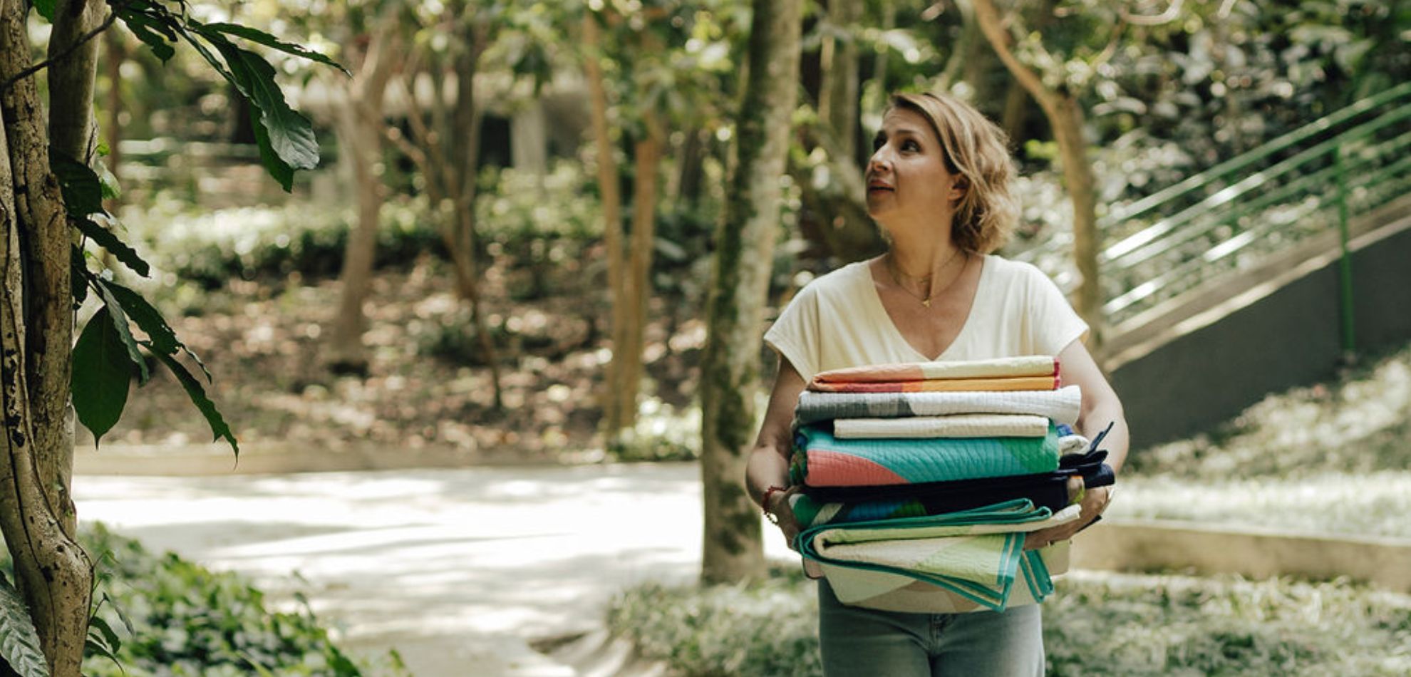 “Casagrande” by Carolina Oneto captures the lush colors and nature of São Paulo through improvisational design, contrast, and emotion in fabric.