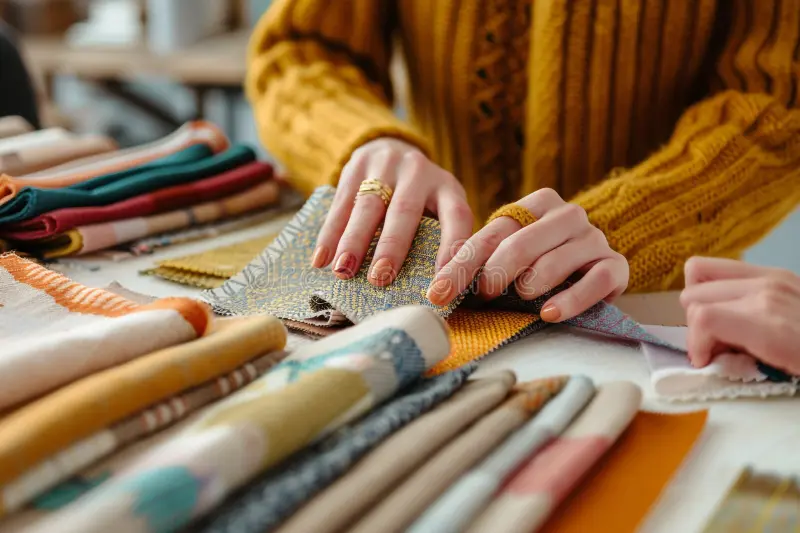 Once fabrics are selected, I organize them visually — just as a painter arranges colors on a palette.