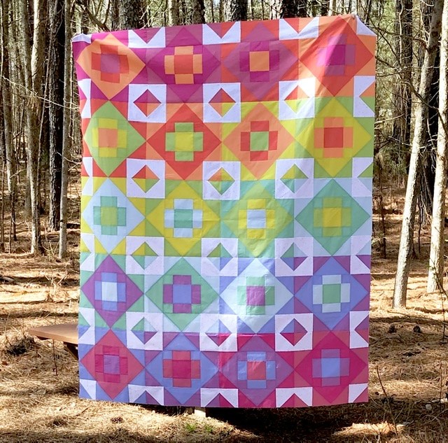 I had become inspired by several improv quilts that kept popping up in my Instagram feed.  One was a wonky cross quilt by Jill Fisher (@Pieladyquilts); the crosses appear to dance and sparkle across the quilt top. I found myself determined to replicate the look of her graceful ‘dancing’ pluses.