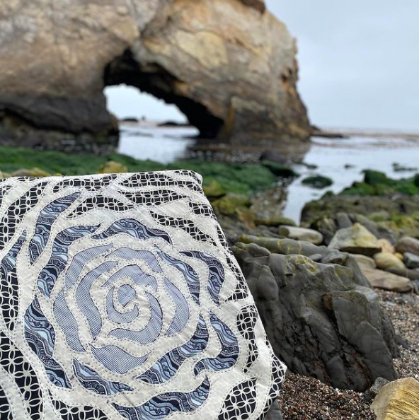 I was born and raised in Los Angeles, CA and I love the combination of natural beauty and urban grit that makes up LA – I work from a studio in Koreatown and draw constant inspiration from the diversity and people of my city. I also have a new series I am working on using half square triangles and textiles from around the world that explores the narratives of race in America. (@havebeenandhopetobe)