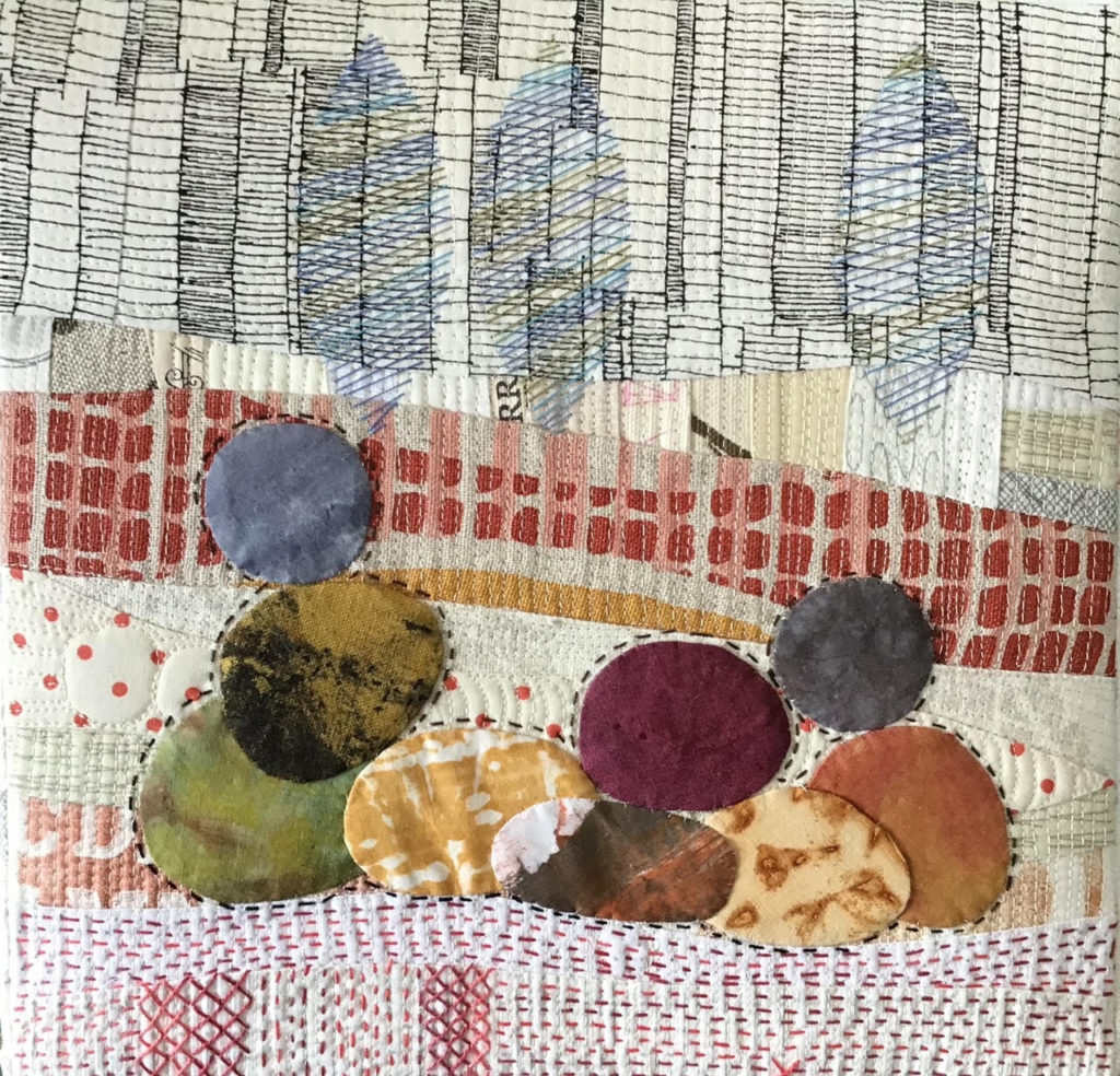 I am a creator, explorer, maker, fiber and mixed media artist, surface designer, teacher, writer and lecturer. My love of layers and texture combine to create my original work. I achieve results using a combination of different surface design techniques such as monoprinting, hand-painting, collaging, free-motion stitching and hand-stitching, amongst others to achieve the effects I am searching for. My work has won numerous awards at national and international shows. The techniques I use in my work can often be found in articles published by Quilting Arts Magazine, A Needle Pulling Thread and others. I have also appeared several times in Quilting Arts TV. I am currently teaching online from my studio in Calgary, Alberta.