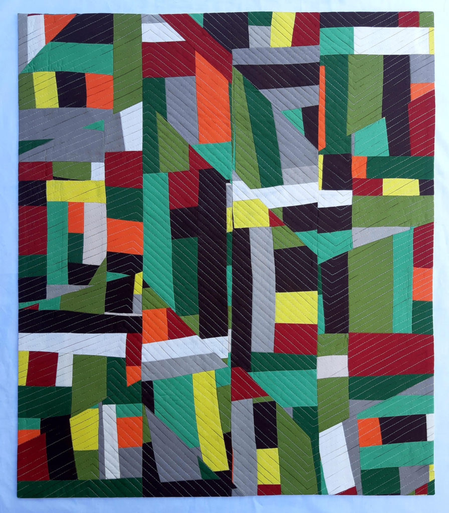My wife gifted me a little domestic machine, and I made my first quilt using a pattern based on Louisiana Bendolph’s incredible quilt, Blocks-And-Strips Medallion. After I finished that one up, I decided to start quilting like those who inspired me to start: Using an improvisational style, bold colors,  simple shapes, and upcycling fabrics as much as possible.