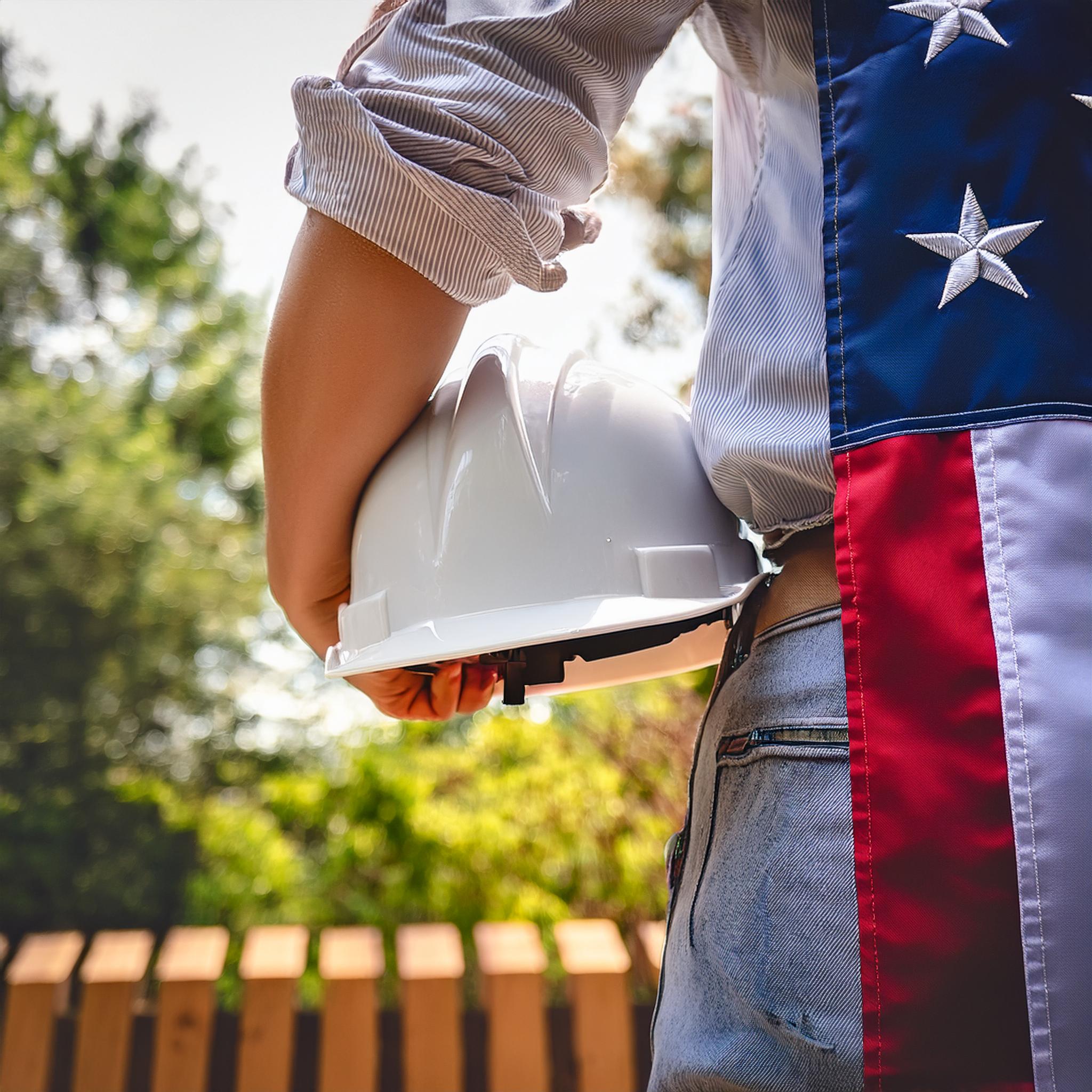 Firefly-encuadre-de-casco-de-constructor-blanco-con-bandera-de-Estados-Unidos-en-la-espalda-en-fondo