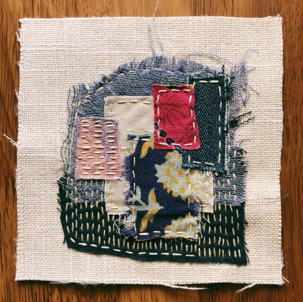 As a child, I developed my interest in embroidery and cross-stitch but never really pursued it as a hobby, until recently. I have started to enjoy the art of slow stitching after I started reading about it a few years ago. The concept sparked an interest in me to explore the medium of cloth and thread without the prerequisite of rules and perfection. I love the freedom that comes with arranging fabric pieces and stitching them together with a needle and thread. The look and feel of the stitches on fabric is kind of addictive for me I guess because that is what draws me in and compels me to create.