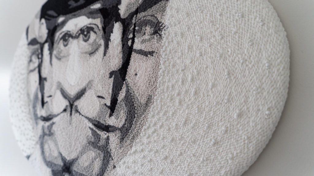 Throughout the course of my studies, I experimented with a variety of materials, from watercolors to digital tools until I found my niche with punch needle in 2017. I started making punch needle portraits in my last year of college. I found this technique while researching materials for my degree project. I fell in love with it right away, but my teachers didn’t like it. They suggested I return to photography, so I put away my yarns and needles and came back to an ordinary project.