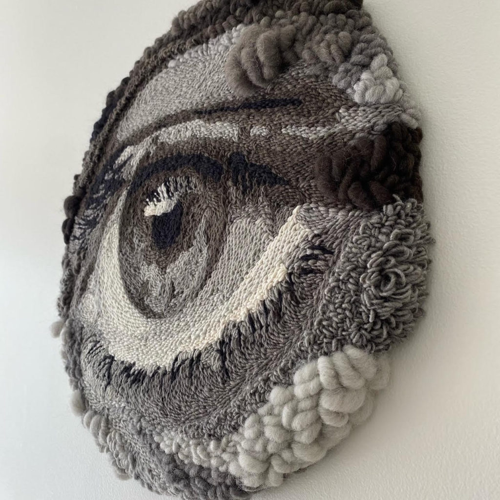 Using my two degrees, I mix the digital and the analogous to create unique pieces. I try to make my work as unique as possible, using beautiful gradients and punch needles that I make myself. Lately, I’ve been experimenting with spinning my own yarn, and it’s like a new world of possibilities opened up.