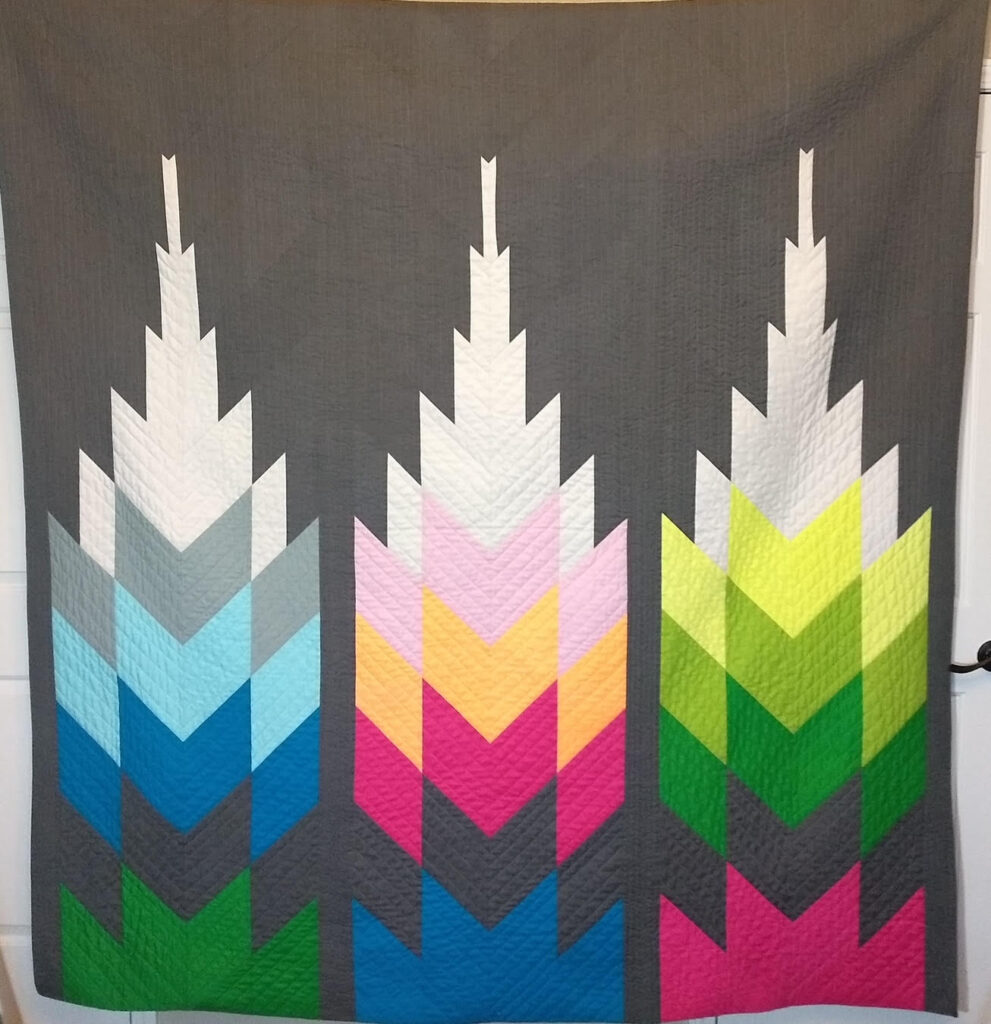 Six years later I am still quilting and I use improv, FPP and yes…I have worked on my accuracy and gained patience with the process. My style is looking at nature, architecture, other artist mediums and asking myself how can I translate these elements into modern quilt designs. I love the problem solving aspect of making something unexpected and changing my mind mid-way through a project to take it in another direction. Half of my projects involve bold solid colored fabrics and the other half turn vintage material elements into contemporary compositions.