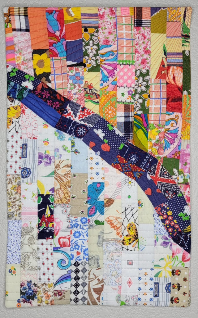 I’ve been making things with thread, fabric and yarn since high school. Back in 2001 I started selling one-of-a-kind children’s clothing made from vintage tablecloths and loved the design process of my business. After the economic downturn in 2010, I took a five year break from sewing and went back to the business world full time. Once my children were older, I thought I would try to use my left over scraps of vintage white on white linens into a quilt idea using hexagons and triangles. While the quilt turned out beautiful, I quickly remembered why I never went down the quilting path…I did not have the patience for the accuracy needed in piecing blocks. When I researched quilt designs on Pinterest, I came across improv style quilts and began experimenting with a design concept not constrained by accuracy.