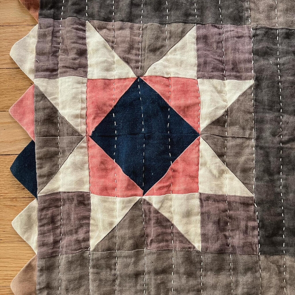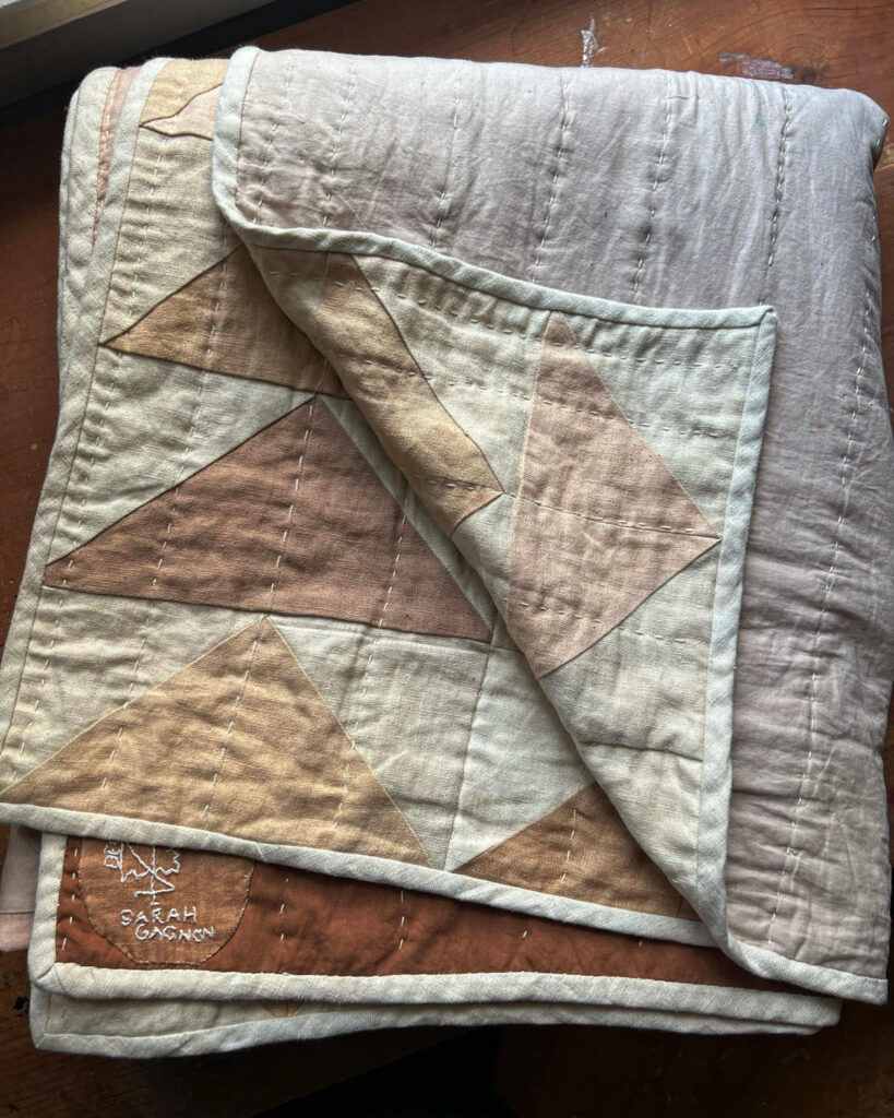 I’m Sarah from @pelicanquilts. I make quilts from naturally dyed linen, typically machine pieced and always hand quilted. I started making quilts three years ago with the goal of making a quilt for each room in my house, “A Quilt for Every Room.” I used to find color overwhelming. I was curious about natural dyes but the work involved was daunting. At the beginning of the pandemic I finally tried it. Something clicked and now I design with wild amounts of color, this time, in a way that made sense to me. I am so happy with the way these textiles are transforming each room in our house, adding color and texture and comfort.