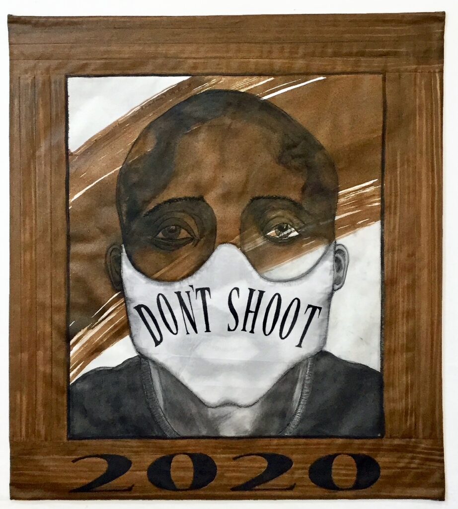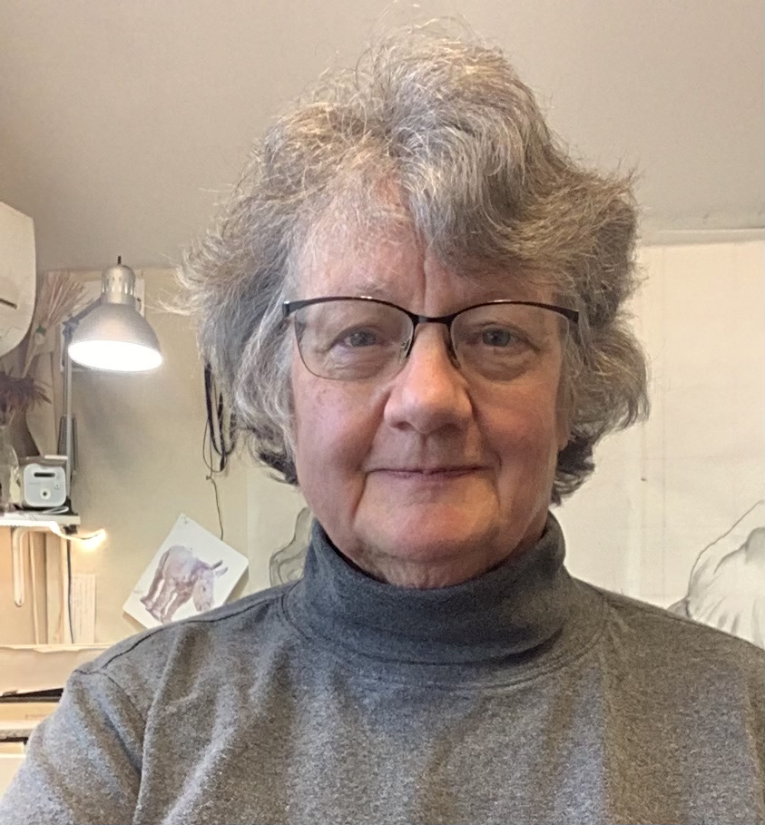 My theater design background instilled in me a love of drawing, creating characters, and telling stories. I like for my quilts to reflect both my love of animals and my politics. I started quilting in 2015 as a natural extension of the sewing, dyeing, and fabric printing I had done in theater. As a quilter I first explored a large range of surface design techniques and thread drawing using free motion quilting to draw imagery. Over the last 3 years my work has focused on drawing and painting whole-cloth quilts and creating series devoted to endangered species and the sentient side of animals.