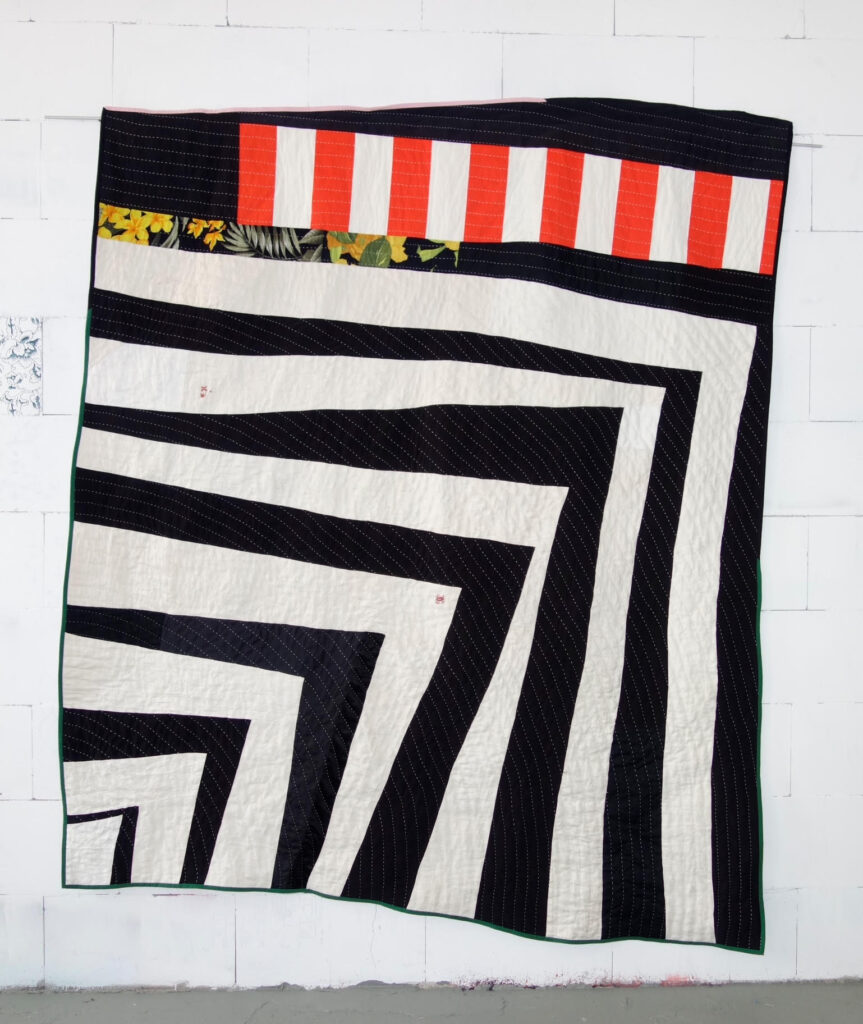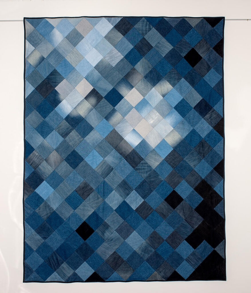 In the beginning I experimented a lot with jeans and thus most quilts were very blue, but I also love to work with white linen or mix colorful fabrics wildly. Also, the first works were very strict geometric which is now loosening up more and more.