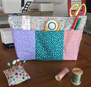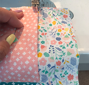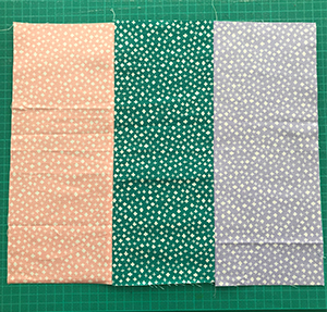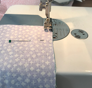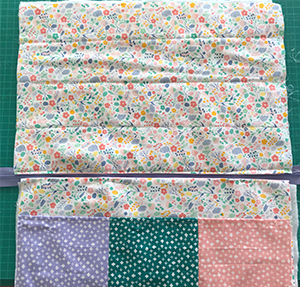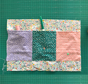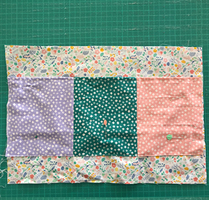 For the external pocket: join the three 5” x 12” rectangles on the long side. Put them right sides together, pin and sew a straight line with the ¼” foot.