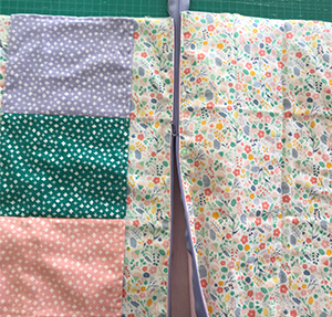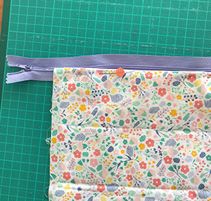 Once quilted, we will pin each side on the top to the zipper, we will sew one side, then the other.