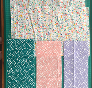 - From the other printed fabrics, cut one rectangle of 5” x 12” from each, for the pocket