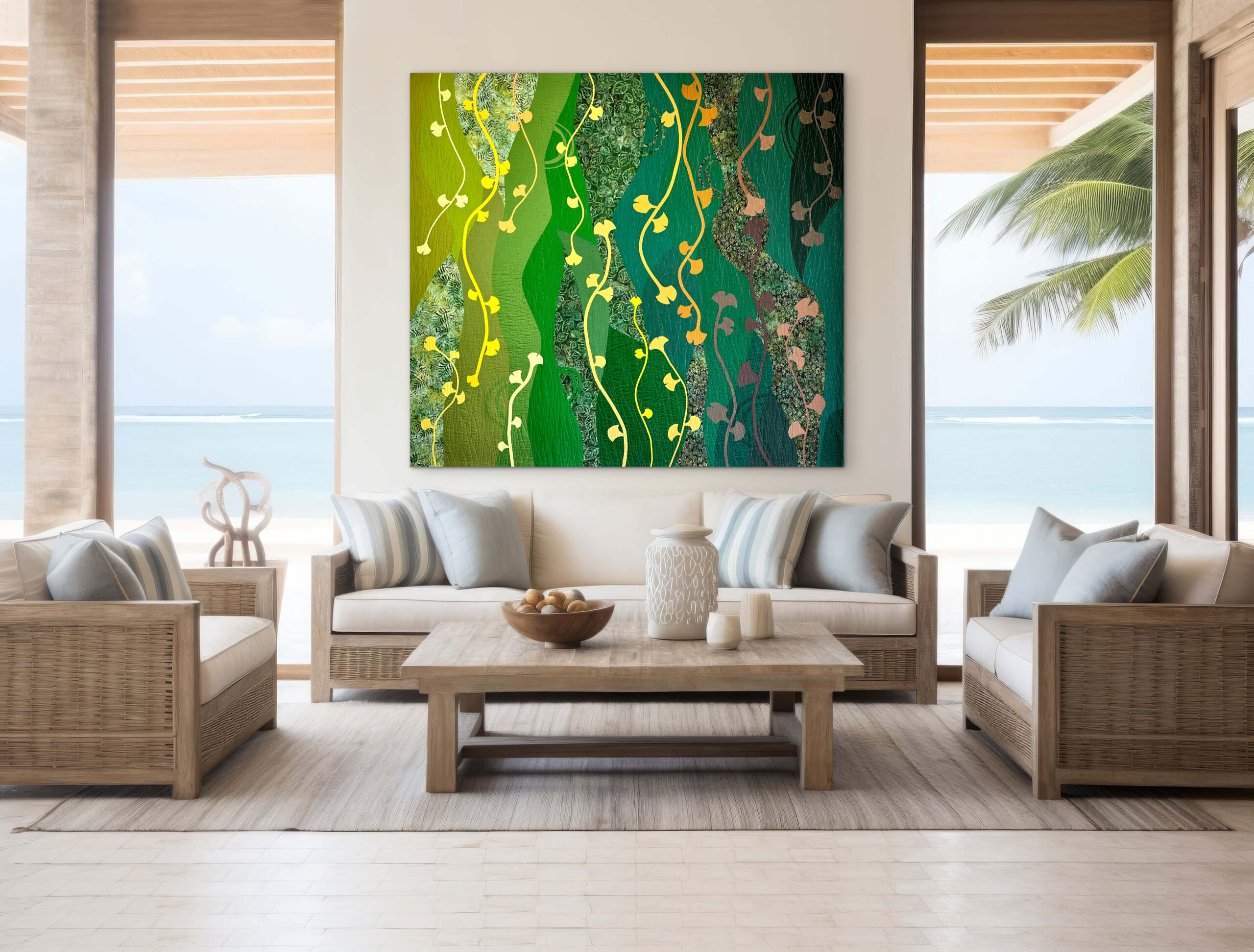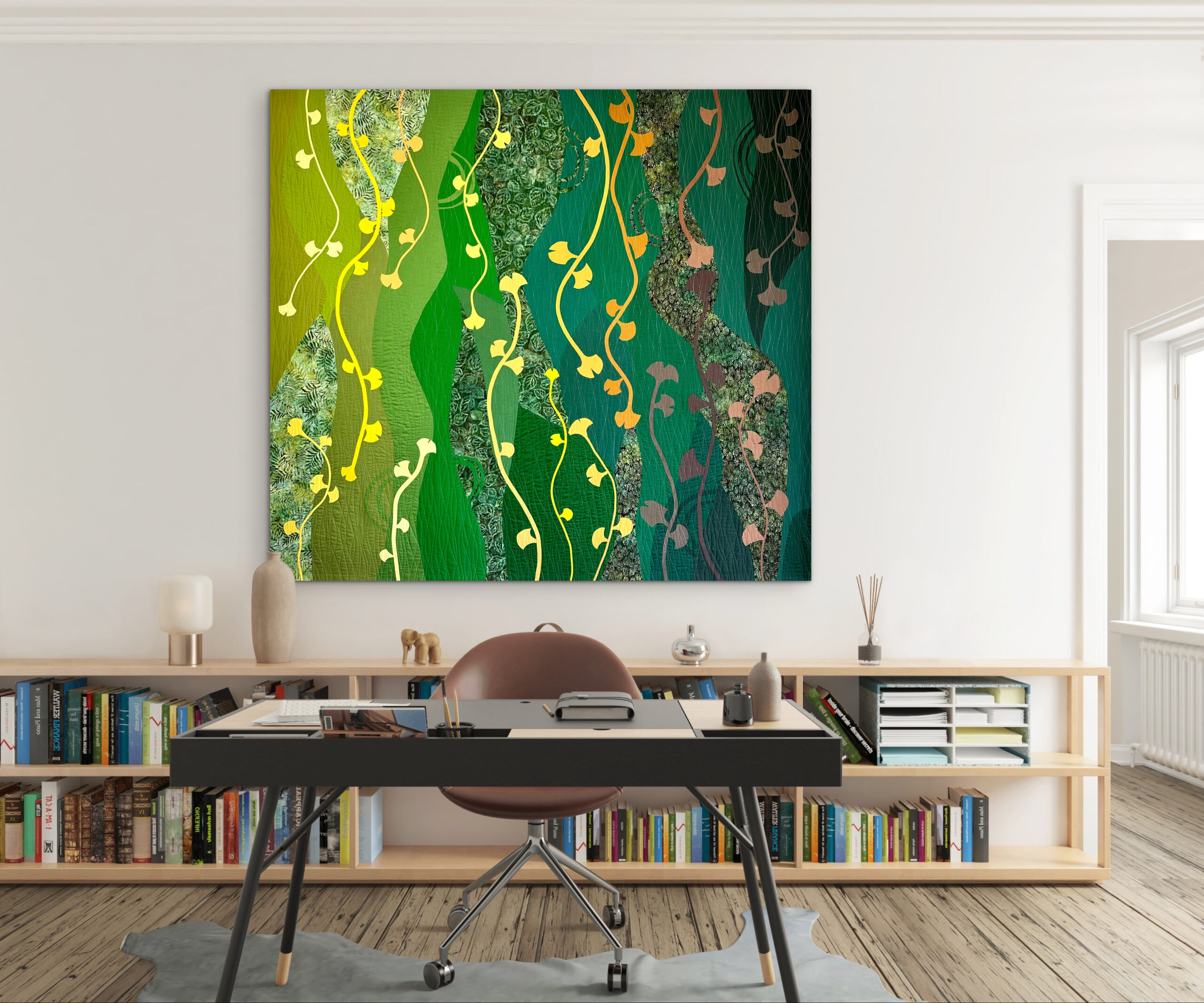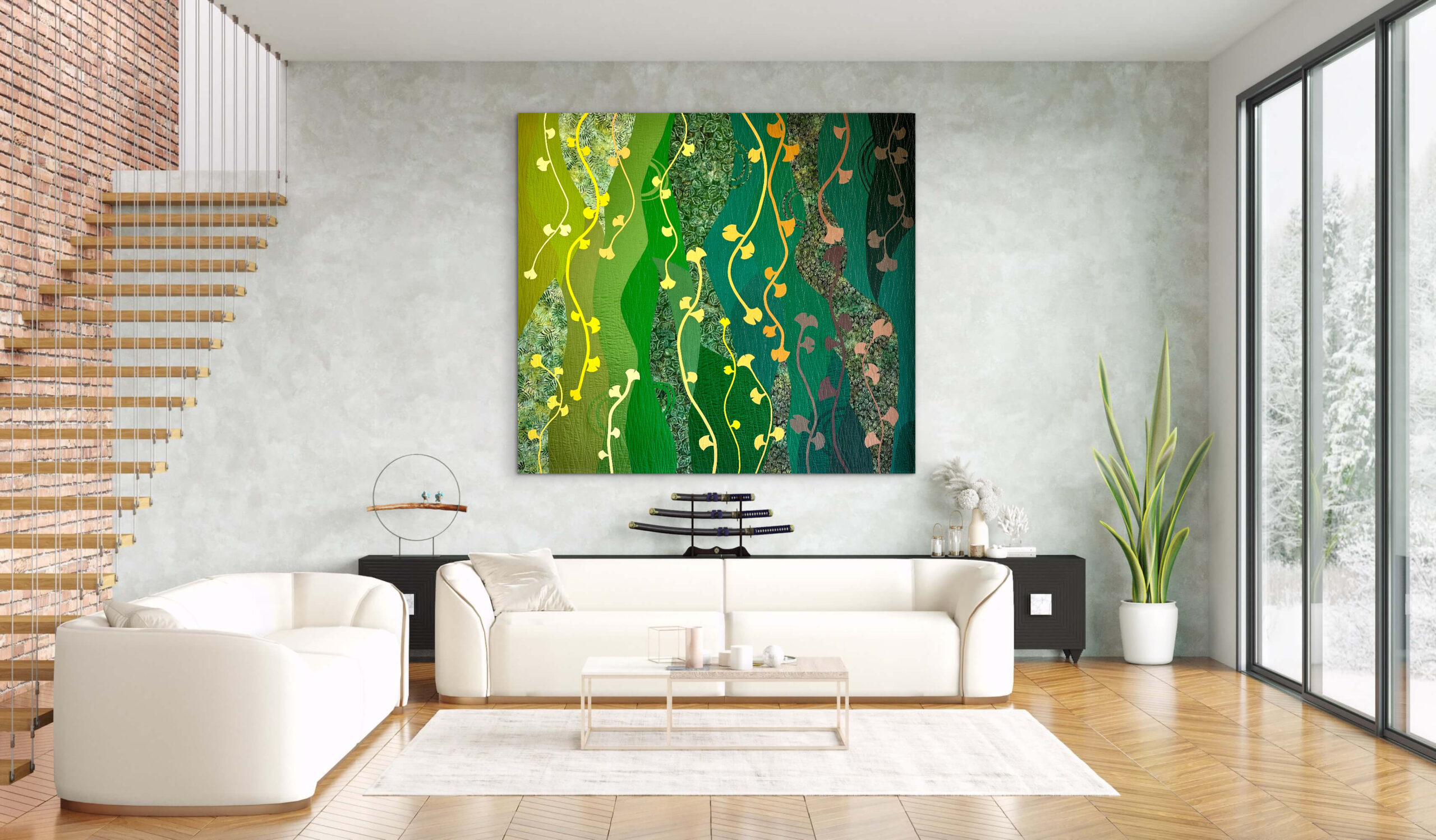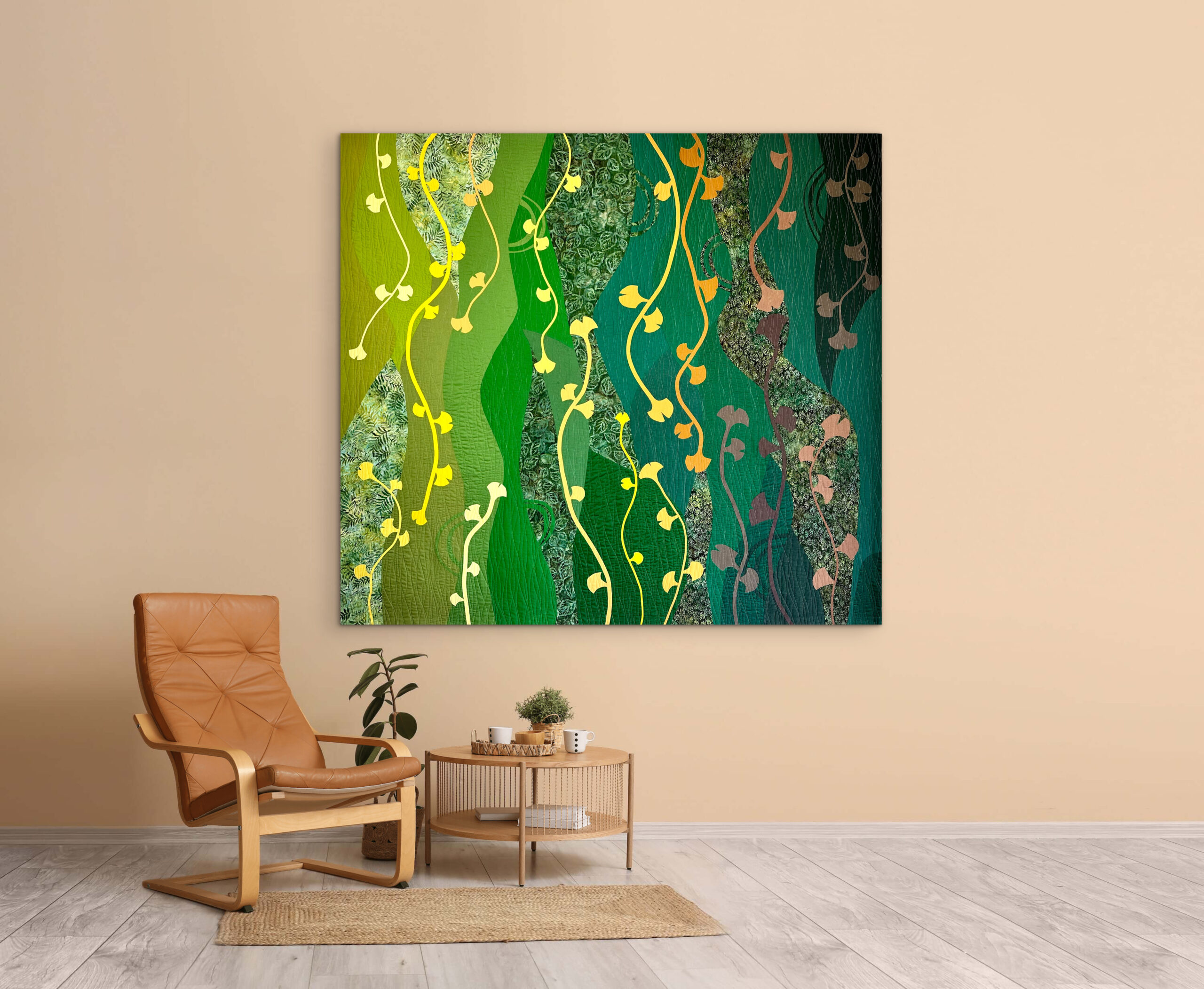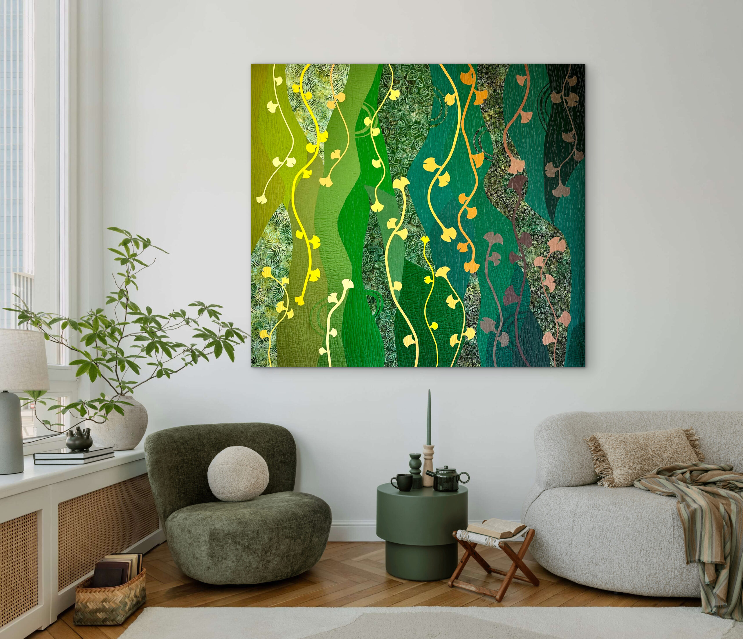 Under a Gingko tree, I found an oasis of joy while raising my children, making our time in Buenos Aires one of the most beautiful chapters of my life. This quilt tells the story of our family’s growth during those cherished years filled with laughter, learning, and love. I invite you to embrace these enduring connections. The laughter and love nurtured under the watchful gaze of the Gingko are some of my most treasured memories.