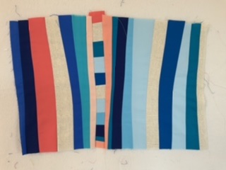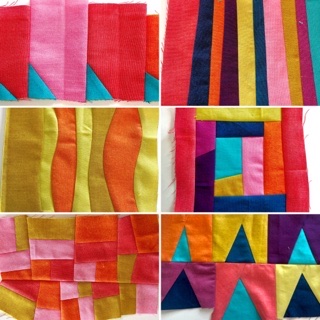 4. Crearás 4 secciones con estas técnicas: improvisación con tiras, triángulos improvisados, curvas suaves y parejas aleatorias. Con esto crearas tu propio quilt.