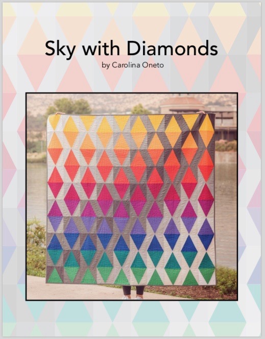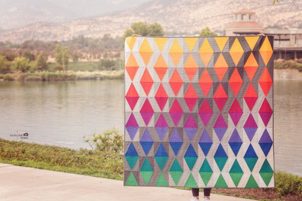 Many times I use music as inspiration, and this time it was the Beatles song, “Lucy in the sky with diamonds”, which led me to design this quilt.To the sound of “picture yourself in a boat on a river, with tangerine trees and marmalade skies”, that sky that I imagine when I hear the song, began to appear, being the triangles the protagonists of this story. I love playing with colors and their interaction. In this case, the change in value in the grays, and the passage through the chromatic circle from yellow to green, is the game of colors with which I wanted to work.
