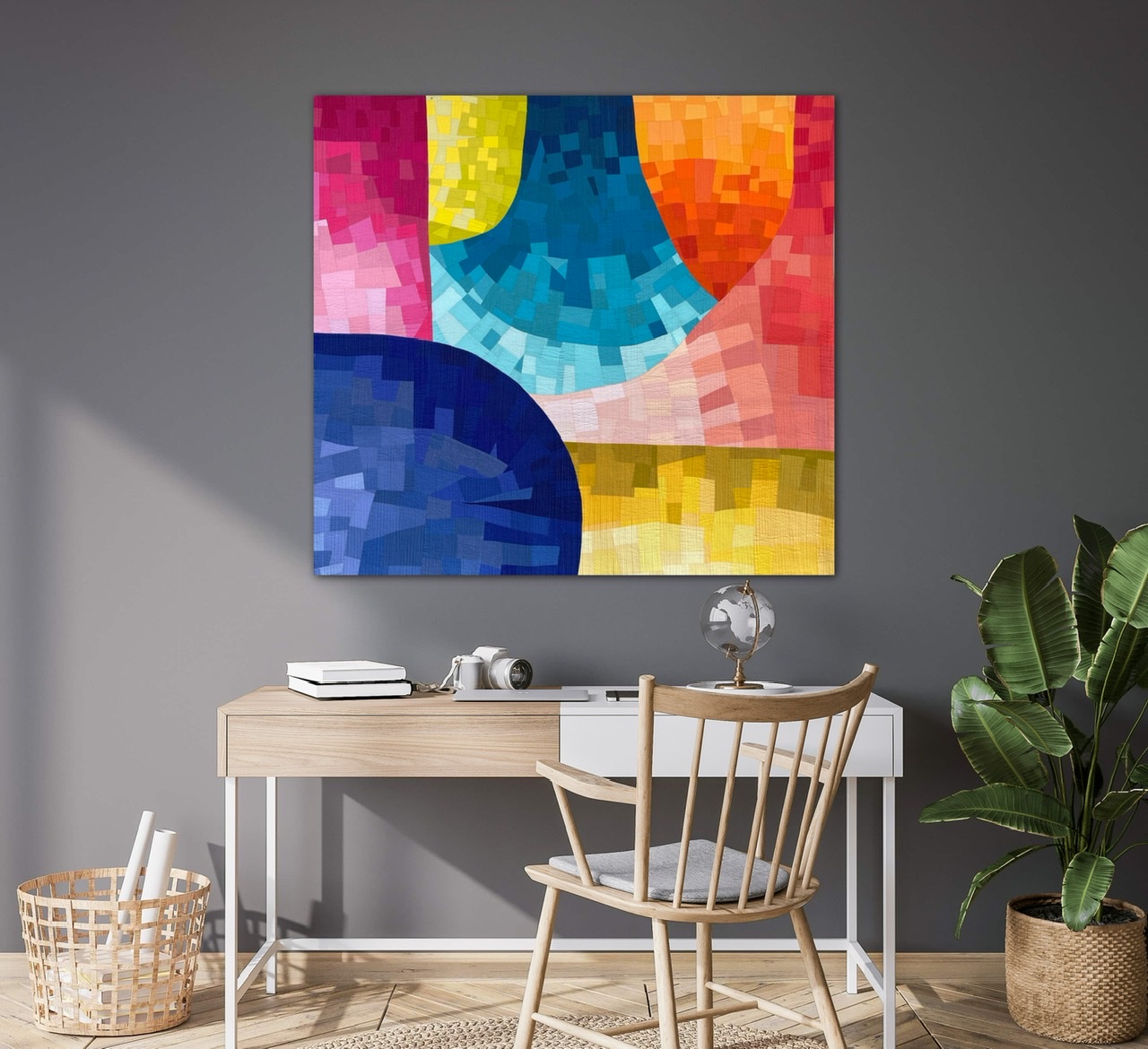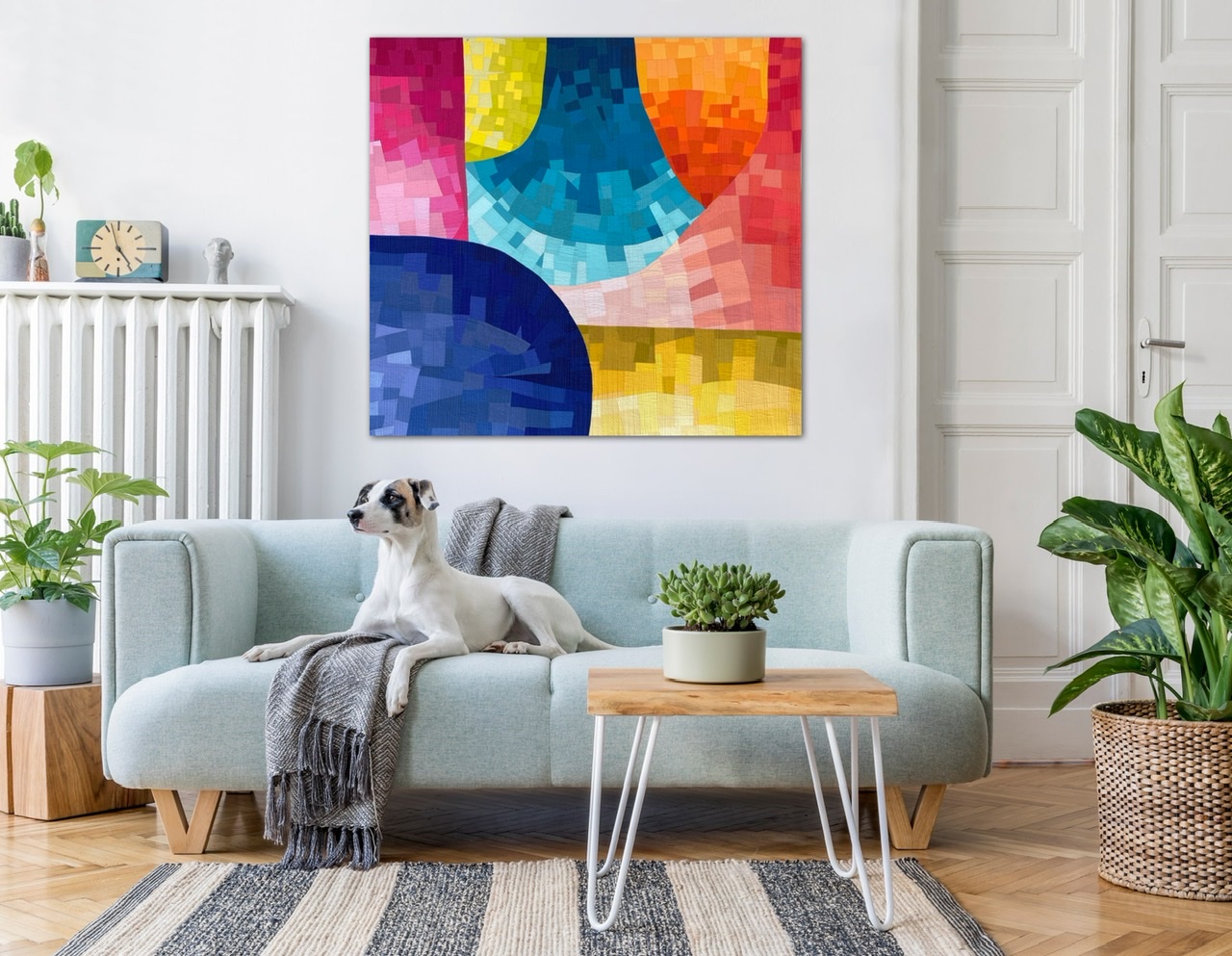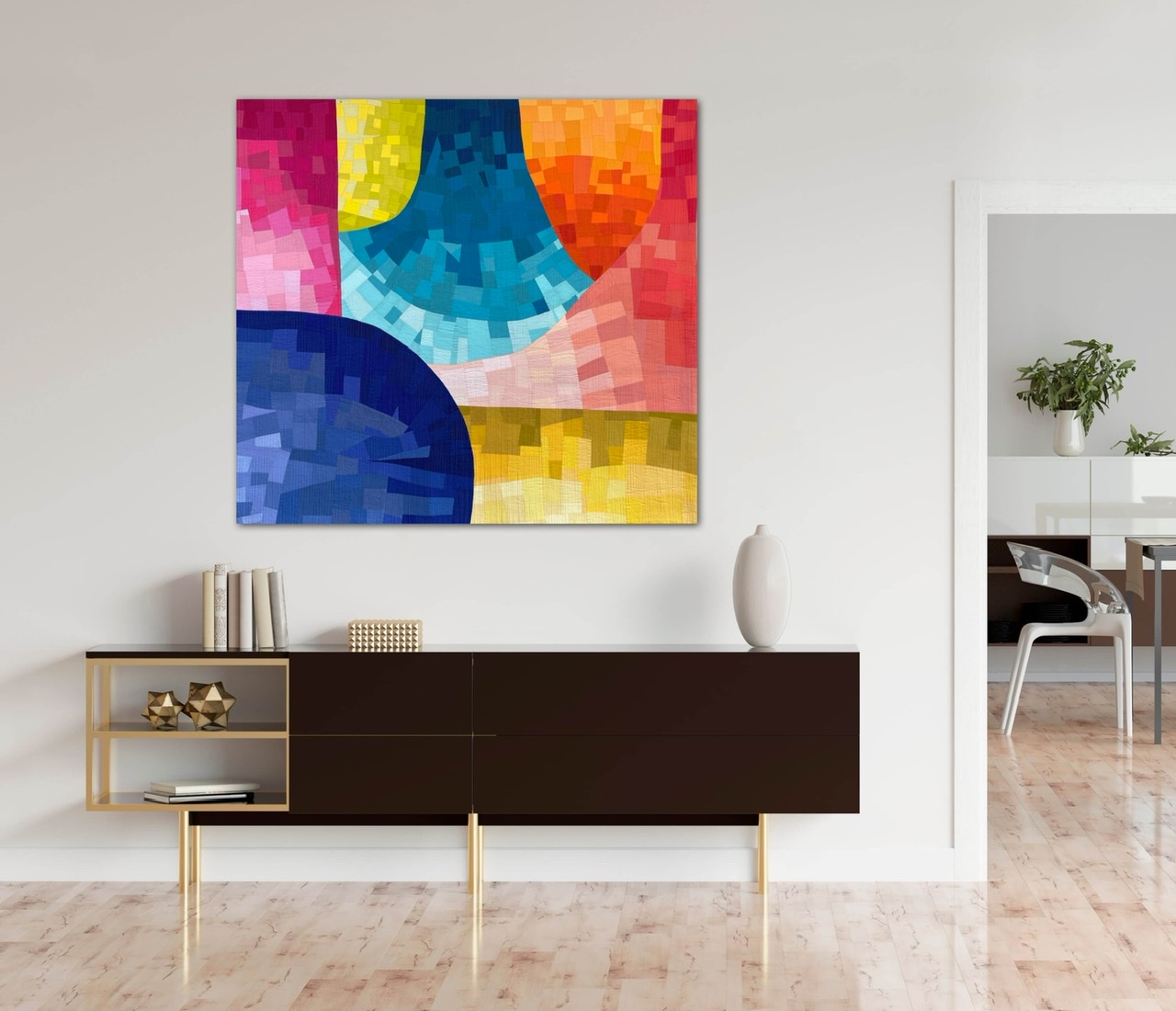 As well as painting with watercolors allows me to play with lightness and darkness, to mix colors and to create beautiful shapes, the same I try to do, but this time with my fabrics. A new study in my watercolor series, where shapes are added to create a new movement.