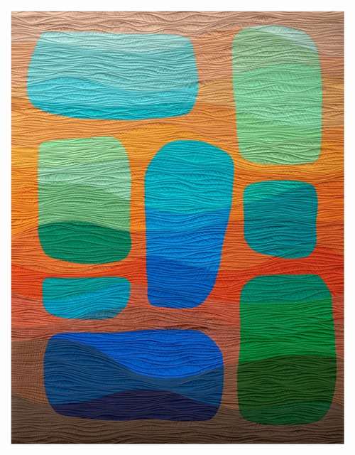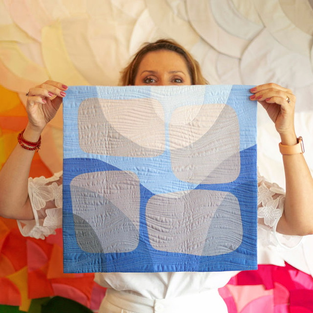 In this recorded course you will design and make a mini quilt top (18” x 22”) learning how to draw, cut and sew curves. During the class you will explore different designs, and how to use value, hue and gradients to create interesting compositions. You will learn how to cut fabrics with complex shapes and how to sew these curved shapes by machine.