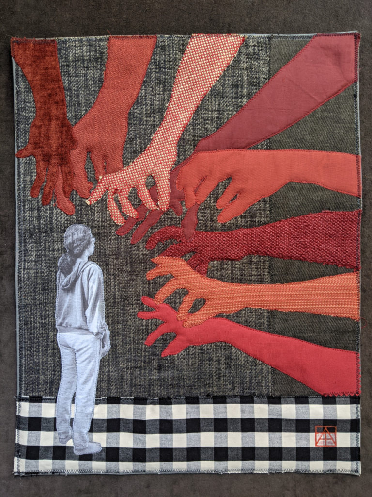 Sarah Zapata is a textile artist that combines traditional techniques with modern design. Many of Zapata’s works are frequently inspired by arpilleras, quilted artworks that are a narrative of communities in Peru and Chile.