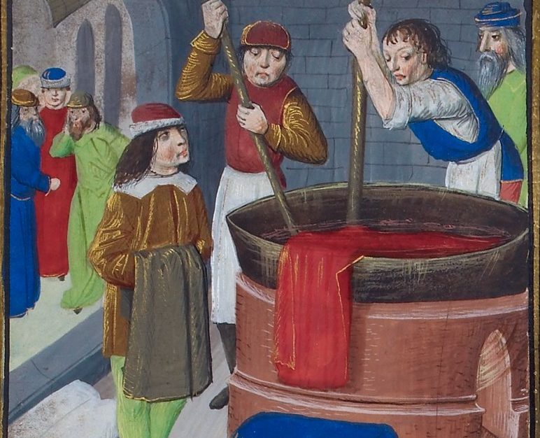 From the 1400s to the 1700s, textiles evolved from purely practical to stylish, as more people adopted a decorative style of dress. Though wool was still one of the most common textiles produced in England, many wool cloths were now dyed vibrant colors. Additionally, silk weaving became more popular in Europe during this time, as the upper class of society enjoyed more fashionable styles of dress.